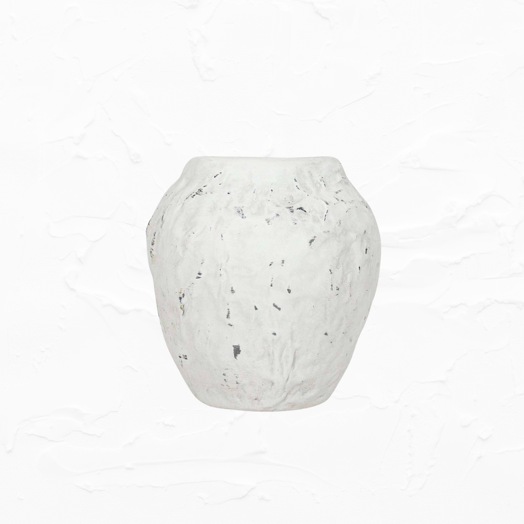 Bring your organic modern decor to life when you add your favorite stems to this beautiful ceramic vase. Its textural matte white finish is accented with brown + grey distressing, giving it a unique + eye-catching look. It can be used as a vase, shelf decor, or simply as a decorative piece. It's a timeless design that will transition through the seasons.